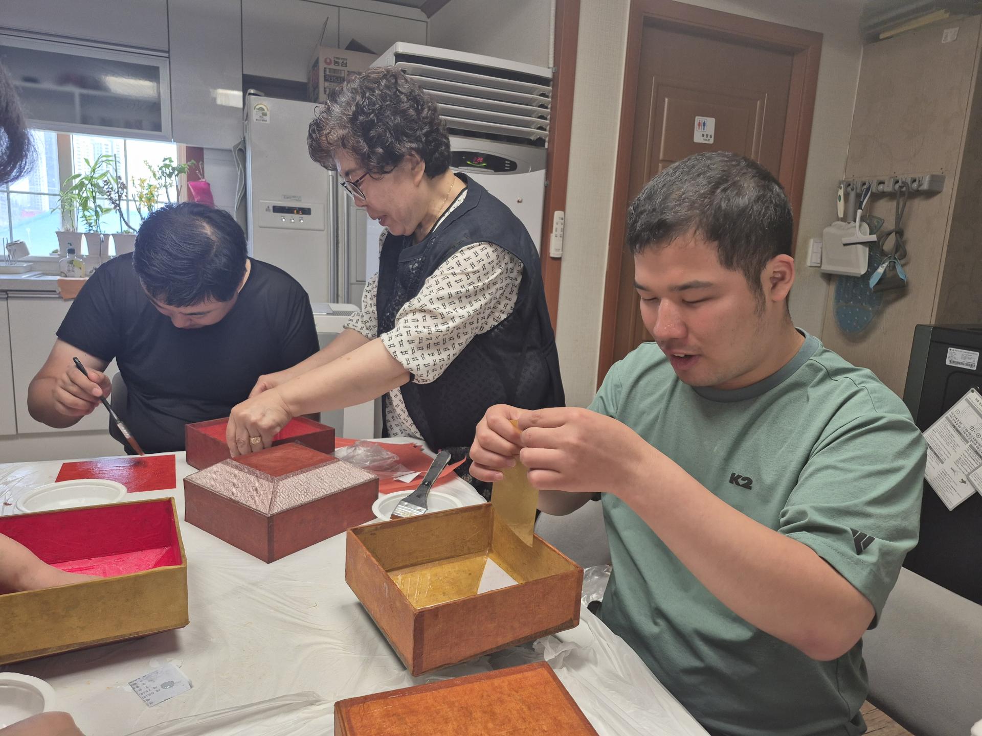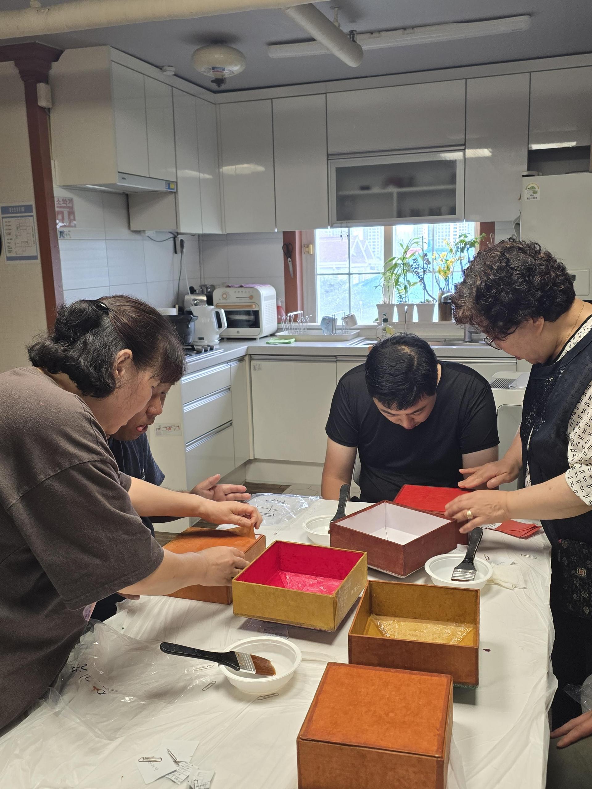 주말을 이용하여 금일 여가문화서비스로 한지공예(볼록사각함만들기)프로그램을 진행하였습니다!