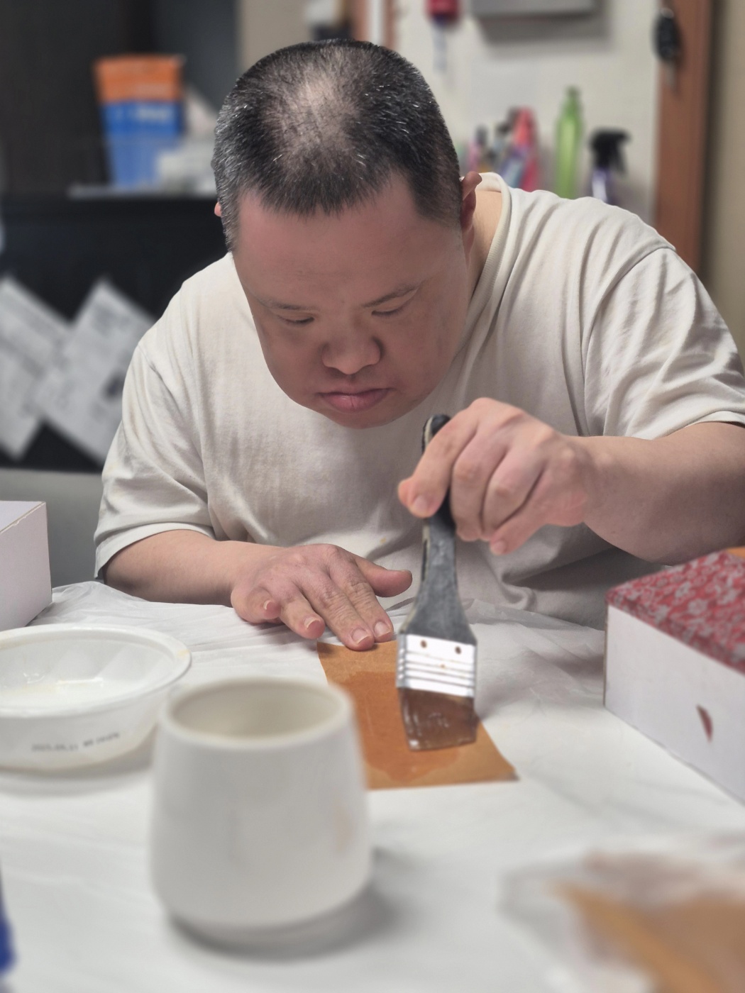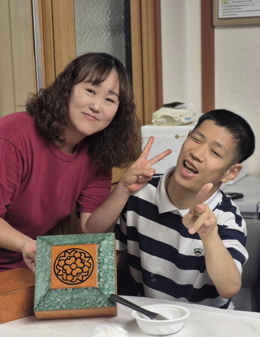 주말을 이용하여 금일 여가문화서비스로 한지공예(볼록사각함만들기)프로그램을 진행하였습니다! 안성한지공예동아리 "미소지음" 회원 분들이 재료일체와 재능기부까지 함께해주셨답니다! 우리 밀알의집 형제님들 처음에는 잘 몰라서 어색해하더니 금방 적응을 하더라구요~ 회원님들과 함께 짝꿍이 되어서 열심히 한지공예에푸~~~욱빠졌답니다! 열심히 풀칠하는 모습과, 참여하는모습 보이시나요?^^ 완성된 작품은 일주일 후에 받아볼수 있다고 하더라구요~~~^^ 오늘 함께 해주신 미소지음회원님들께 너무 감사드립니다! 작지만 우리식구들의 마음을 담아 맛나게 회원님들과 드시라고 맛있는 인바이코커피를 선물해드렸습니다!^^ "우리것은 좋은거이여~~~^^/"